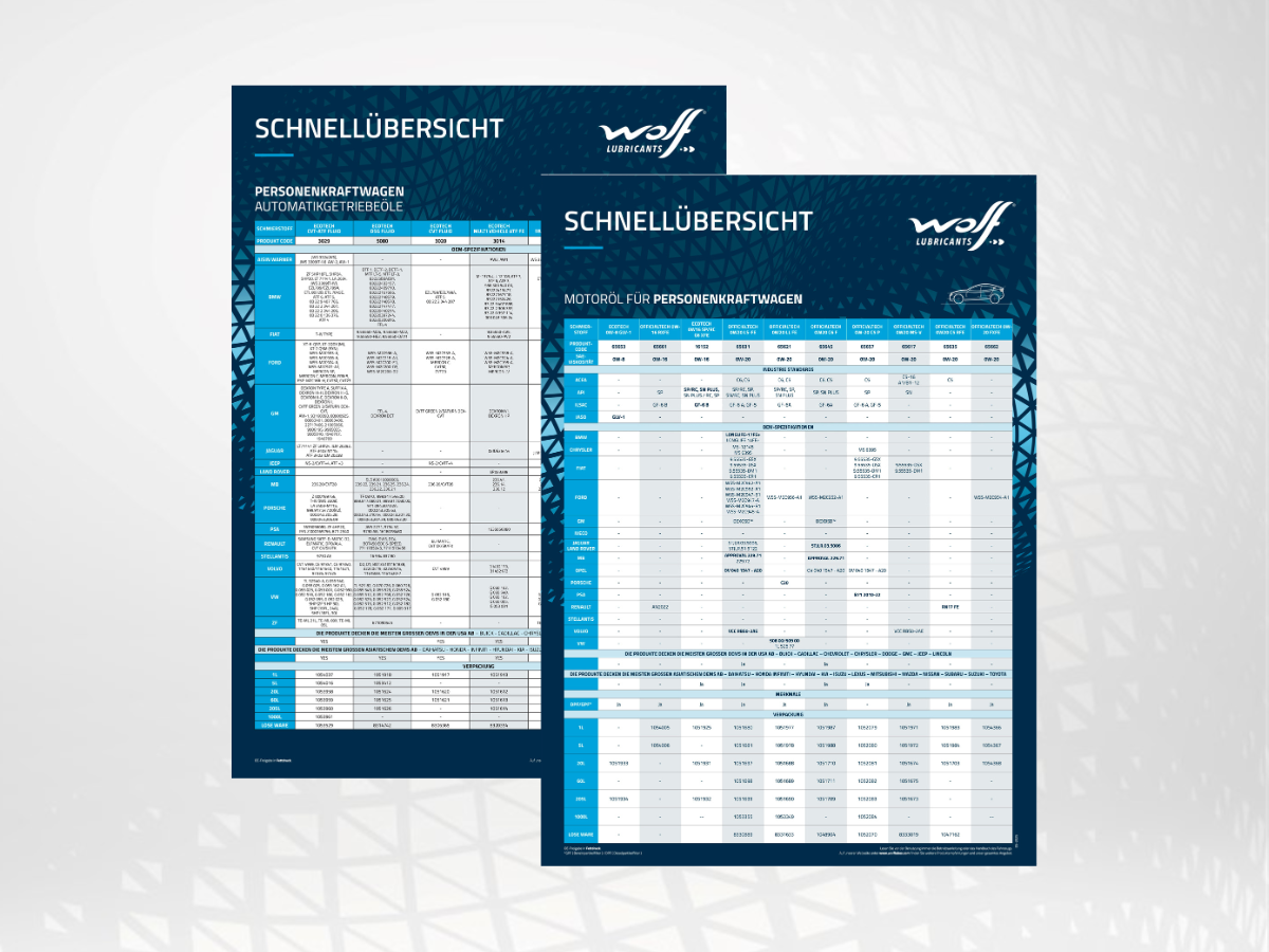 Wolf PKW-Öle auf einen Blick: